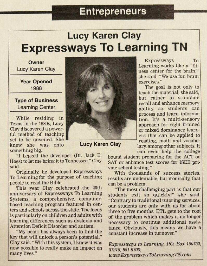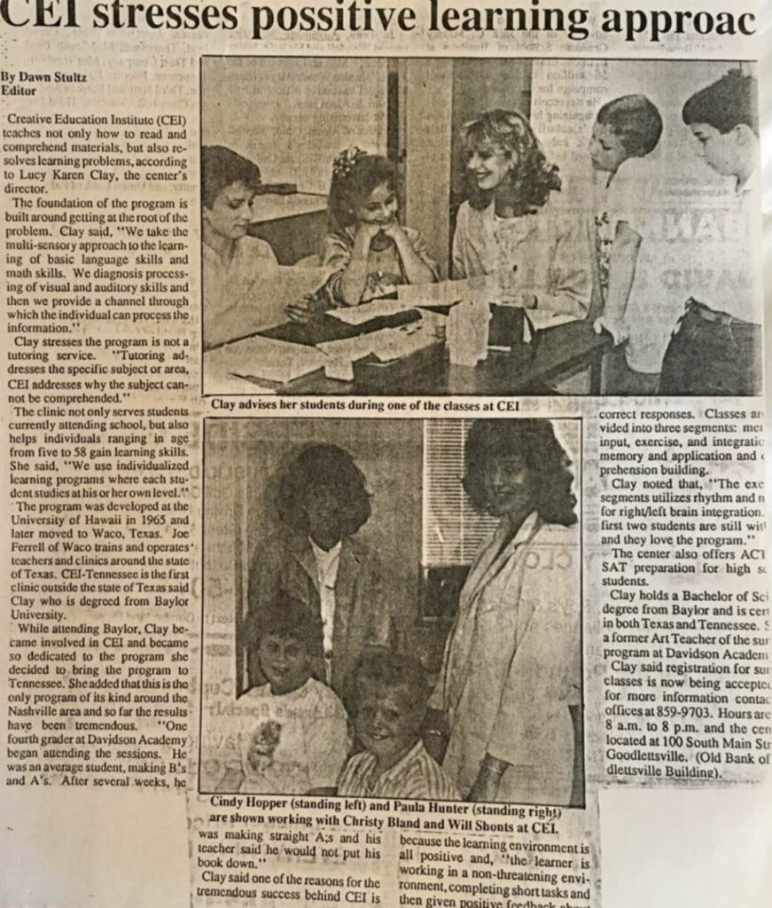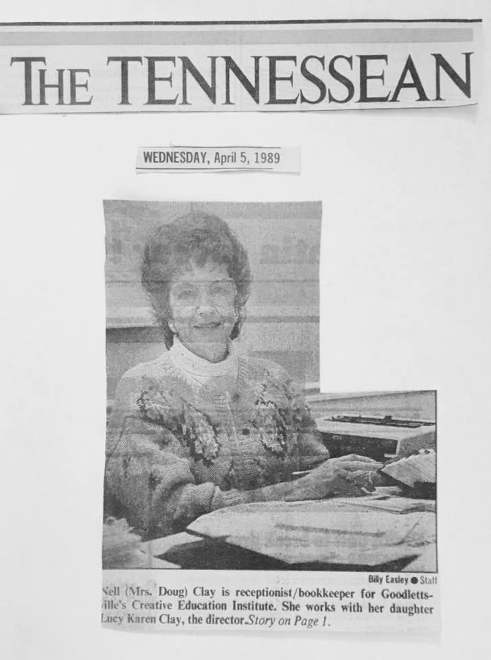Nell (Mrs. Doug) Clay is receptionist/bookkeeper for Goodlettsille's Creative Education Institute.